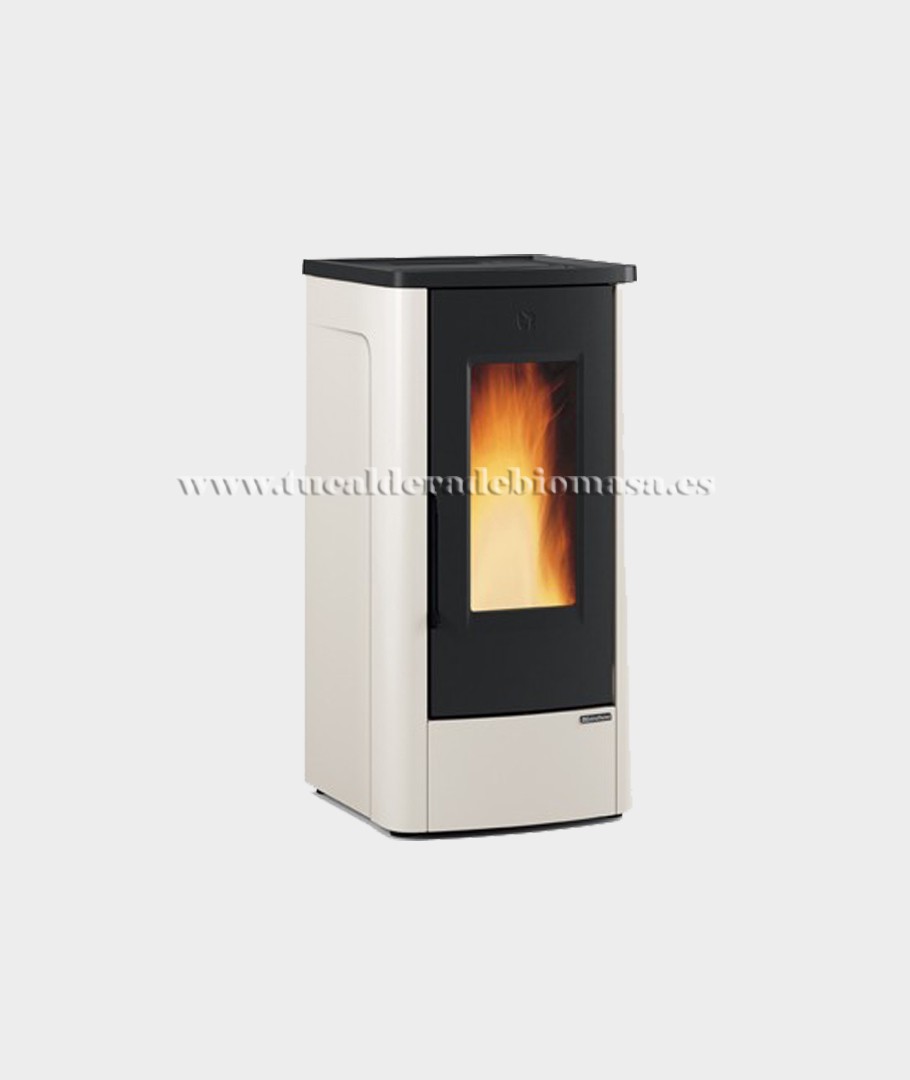 | DESCRIPCIÓNOfrece una perfecta combustión de pellet. Hogar, puerta y brasero en fundición. Estufa idónea para ceder el calor difundiéndolo durante mucho tiempo al ambiente. Amplio cristal panorámico en la puerta del hogar. | CARACTERÍSTICAS